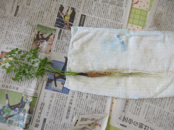 すると、ニンジンの根っこらしいものを見付けることができました。また一つ、みんなで問いを解決することができました。