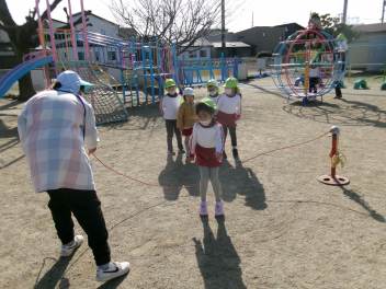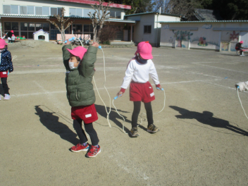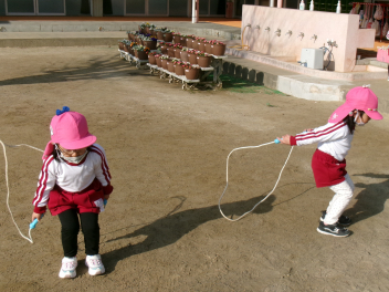 もも組さんは、縄跳びのチャレンジタイムをしました。