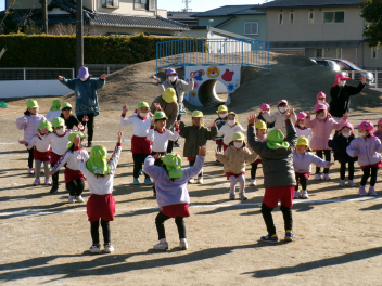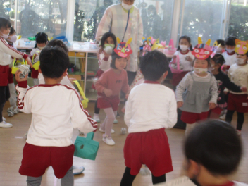 内野幼稚園の子も一緒に鬼になったり豆を投げたりしました。