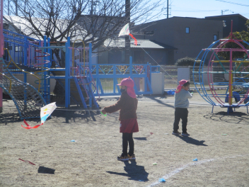 今日は、比較的暖かく戸外遊びも楽しむことができました。