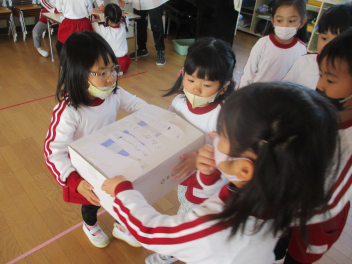 鬼のパンツではないかということで、もも組さんがどうしたら良いのか考えて、箱に入れて鬼に返すことにしました。