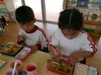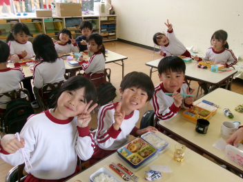 はる組さんは、幼稚園で食べる最後のお弁当でした。