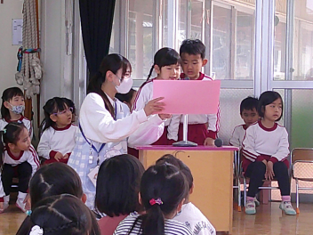 ひよこ組さんともも組さんからのお祝いの歌と言葉です。