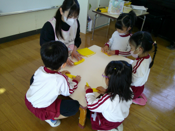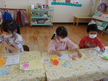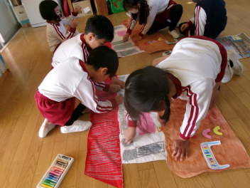 もも組さんは、新入園児へのプレゼントづくりをしました。
