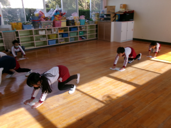 戸外では、「だるまさんが転んだ」をして遊びました。