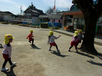 ひよこ組さんは、身支度が終わると、すぐに戸外に出て遊んでいました。