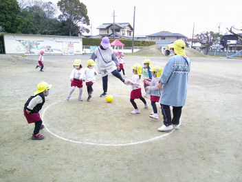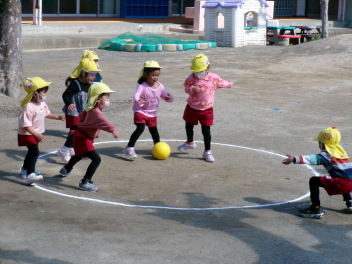 また、はる組さんは、戸外で大好きなドッジボールをして遊びました。
