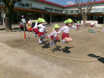 はる組さんは、戸外で縄跳びをしたりドッジボールをしたりして、目一杯遊びました。