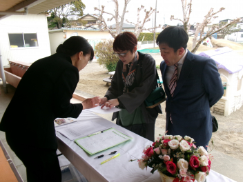 保護者の方にコサージュを付けてもらいました。