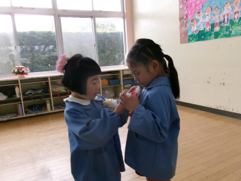 はる組さんが、お別れ会のお礼にプレゼントを用意してくれました。