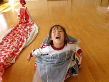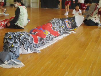 室内では…こいのぼりを使った遊び。