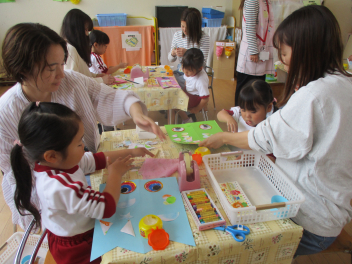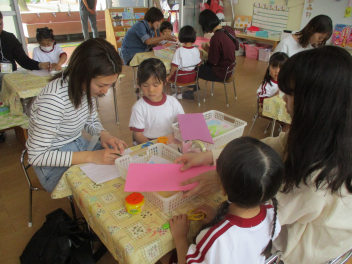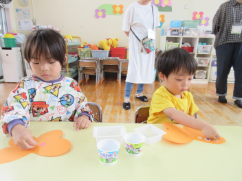 お花で飾りづくりをするもも組さんもいました。