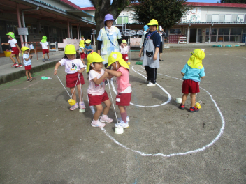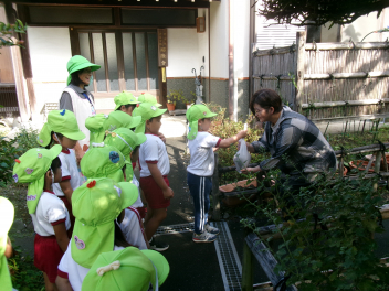 少し前に、はる組さんのダイコンレスキュー隊の子供たちが、もも組さんに「一緒にダイコンの虫取りをしてダイコンを守ろう。」とお願いしました。