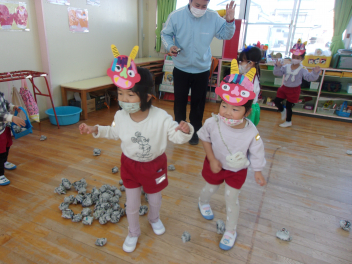 内野幼稚園の子も一緒に鬼になったり豆を投げたりしました。
