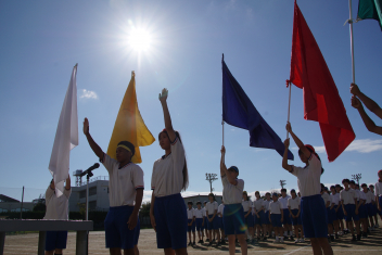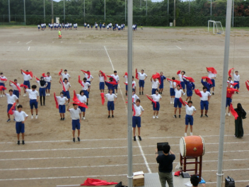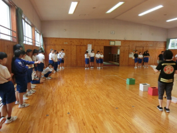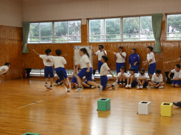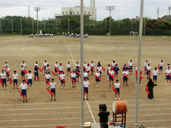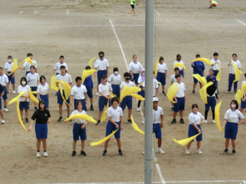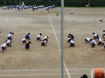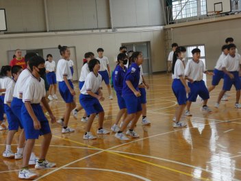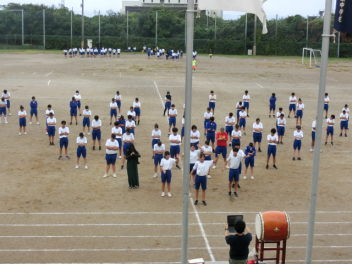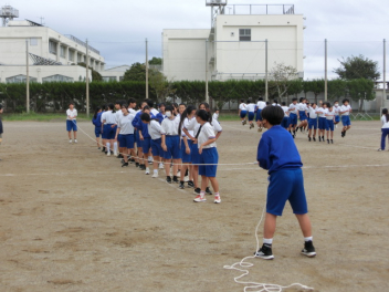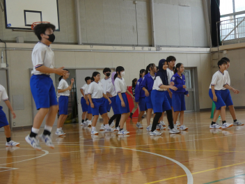 開閉会式の練習、召集の確認をしました。集団パフォーマンスでは3年生を中心に仕上げの練習をしました。長縄では、各学級、大きな声で練習をしました。