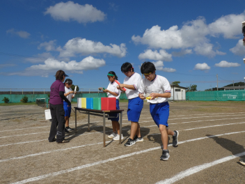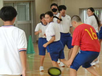 体育大会を盛り上げようと実行委員会が球技大会を企画しました。ドッジビーとピンポンinの競技を行いました。お互いに応援し合って、楽しめた大会になりました。
