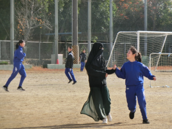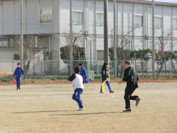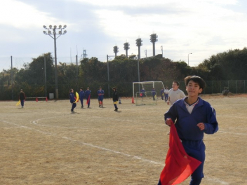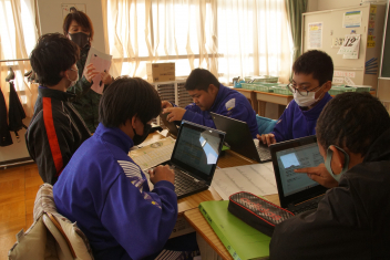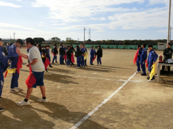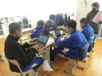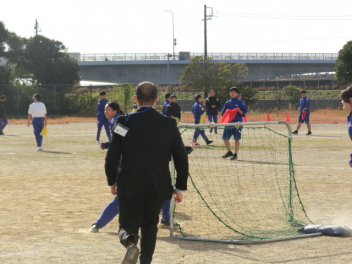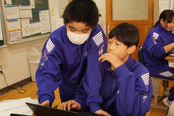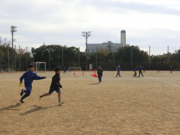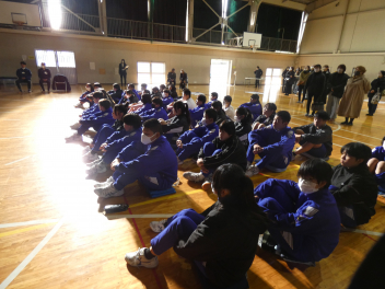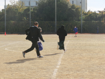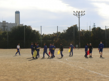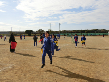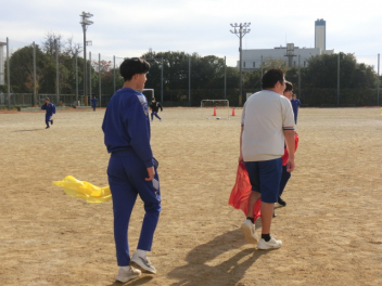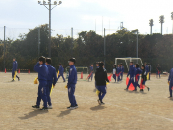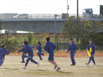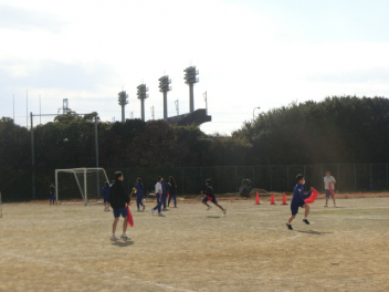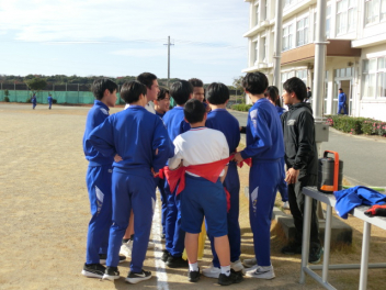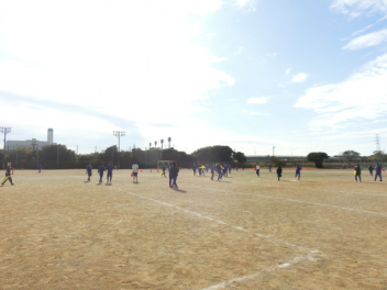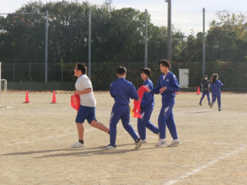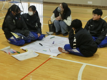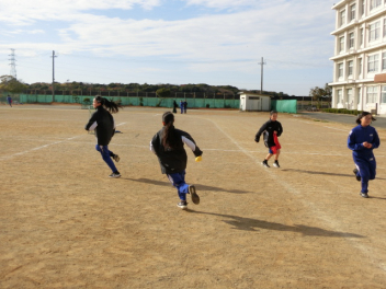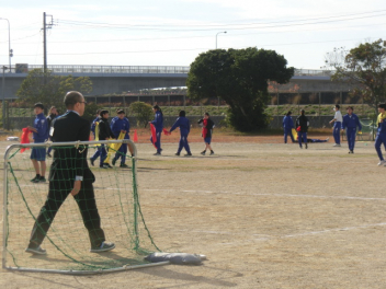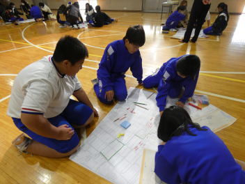 体育で、1組対2組のサッカー対決がありました。フォーメーションを考えたり、イメージトレーニングをしたり、休み時間から盛り上がっていました。