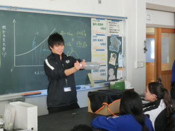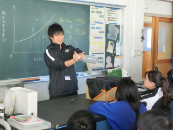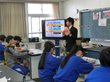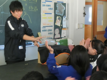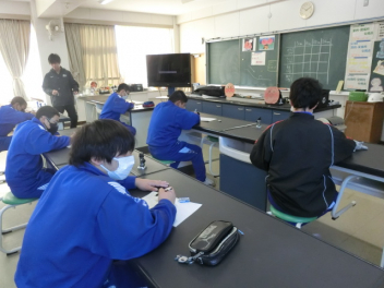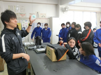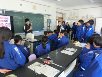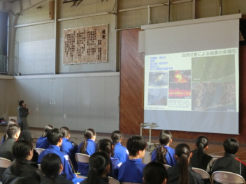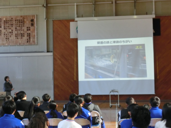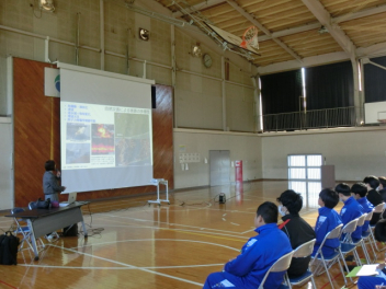•  東北大学から講師を招き、東日本大震災の経験を風化させずに語り継ぎ、防災・減災についての正しい知識を深めることで、災害時の対応力を高めることを目的に減災学習をしました。