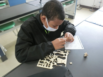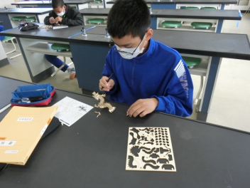 技術の授業です。木材加工で、ファンシーボックスを製作しています。