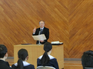 校長先生からは、世界陸上や万博に見られた人が限界に挑む姿、技術や文化の革新に情熱を注ぐ姿を例に挙げ、AIの発達が進み、便利になっているが、かわらないものは人の心、自分の意志で踏み出す一歩であり、命の輝く瞬間であると言葉がありました。