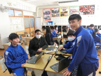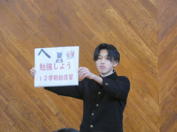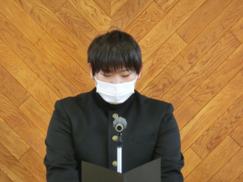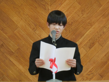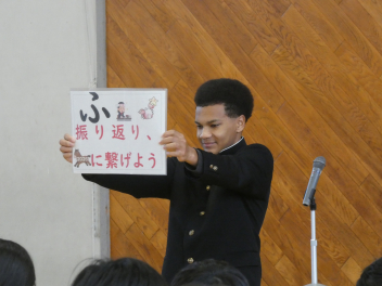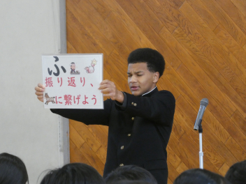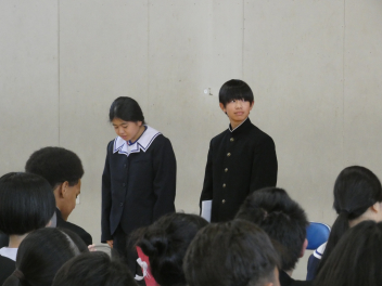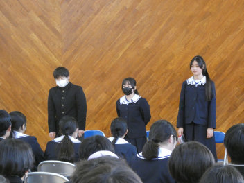 生徒からは、2学期を振り返り、目標の達成の様子や学習への取組、行事活動に向けた学級の様子、3学期の目標が話されました。