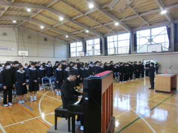 代表生徒による2学期の反省、校長先生の終業の言葉を聞きました。
