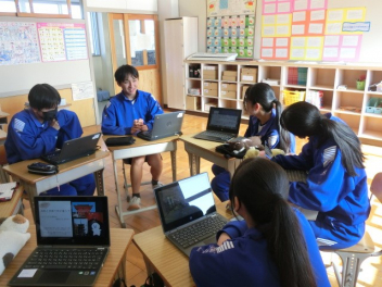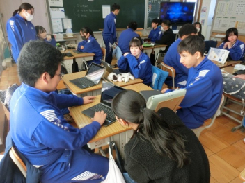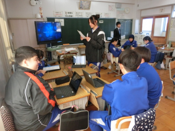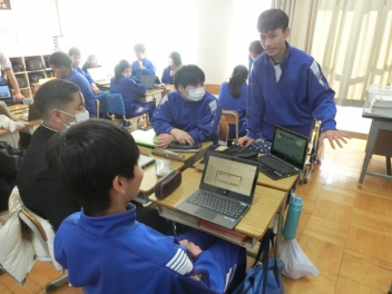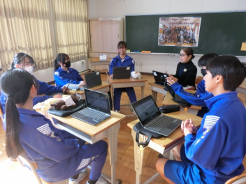 3年生の総合学習の探究発表会の様子です。「他地域に学ぶ」をテーマに、私たちの地域をよりよくしていくために、今の課題を考え、どのような工夫や取組ができるかを提案しました。