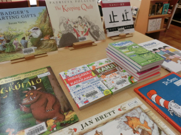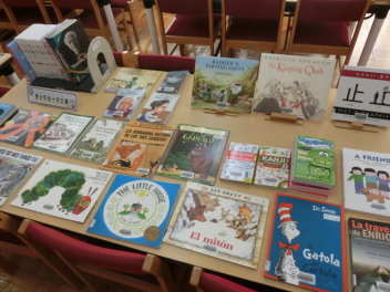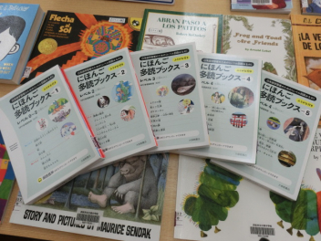 「やさしさと思いやりの心」を持った優しい人を育てるために、日本赤十字社の青少年赤十字文庫整備事業で、図書室に外国語(英語、ポルトガル語、スペイン語)の新書が100冊以上揃いました。一足早いクリスマスプレゼントのようです。ぜひ、手に取って読んでみてね。