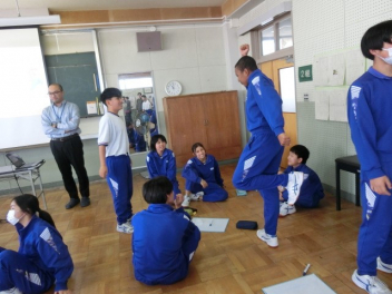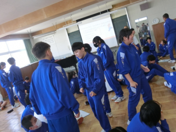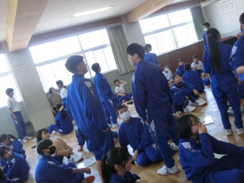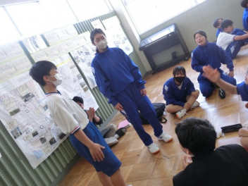 1,2年部の活動の様子です。今年度も江南中では、1年生と2年生が合同学年として、「つながり」を大切に活動をしていきます。先生方の自己紹介と交流エクササイズの様子です。「ジェスチャーカウントアップ」と「○○と言えば・・・」を行いました。