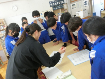 学校探検の様子です。2年生が職員室への入室の仕方の手本を示したり、特別教室の場所を案内をしたりしました。