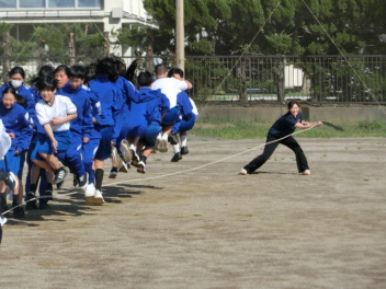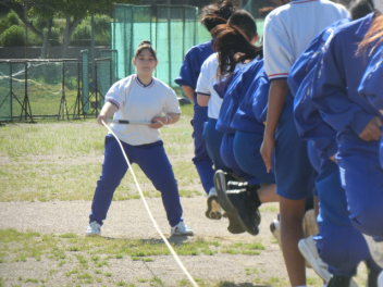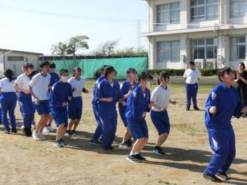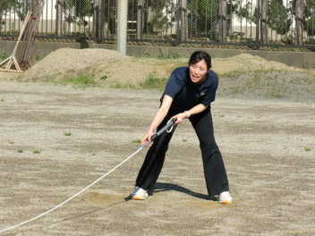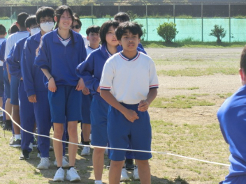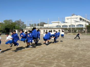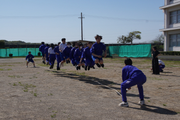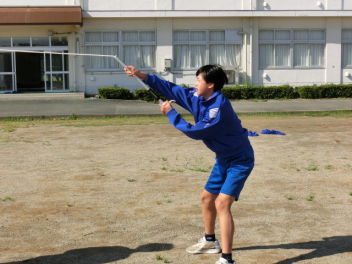 長縄大会をしました。互いに声を掛け合いアドバイスをし、クラスみんなで、大きな声で「1,2,3・・・」と号令や回数を数えました。1年生は、初めての挑戦で1回跳べたことにみんなで喜び、2,3回と増えていくことで、さらに盛り上がりました。クラス全員が1つにつながった長縄大会になりました。Link Cup?おさカップ?は、2年2組が獲得しました。