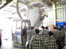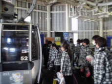 「初めてのスキー」の生徒が多いです。到着後、ゴンドラリフトで山頂駅へ向かいます。
