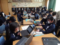 1年生は「未来授業」にむけて、講師の職業について調べました そして質問事項も