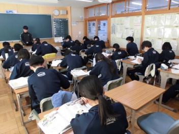 教科書の内容から、実社会や世界の現状にまで目を向ける さすが3年生、自分の考えを持っています