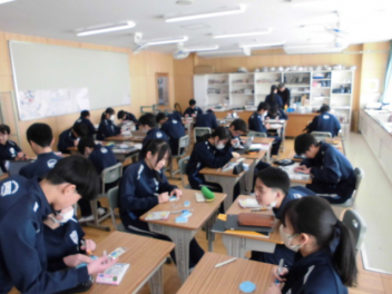 2年生では、文化の継承を知る、礼儀の意義、自由なのに不満、などクラス内で様々な意見を交流しています