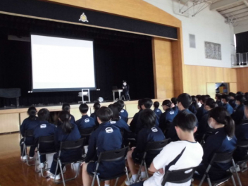 今の時代、SNSの利用は欠かせなくなりました。「みなさんが、被害者にも加害者にも ならないようにお話します」実際に起こった事例を紹介しながら、問題点や注意すべき点などを学びました。正しい判断、強い心が大切です