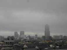 とても寒い朝でした アクトタワーの向こうに雪山が見えます