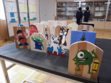 美術の「消しゴムはんこ」の制作も進んでいます 彫刻刀で「シュッ、シュッ チョイ、チョイッ