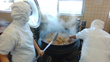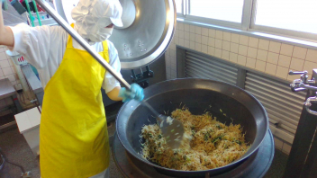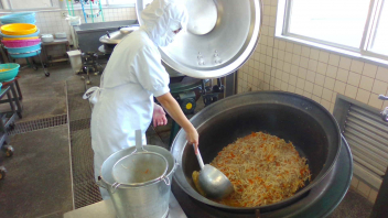 月曜日の給食は「ウインナーソーセージ・ボイルキャベツ・秋味シチュー」です。来週の給食もお楽しみにしていてくださいね