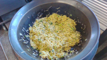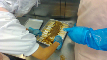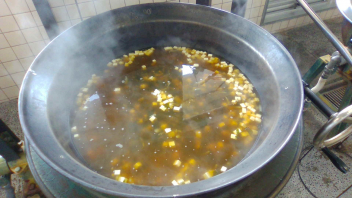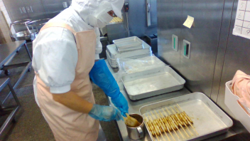 今日は、しょうゆ・みそ・砂糖・酒・みりん・ごまで特製ダレを作りました。