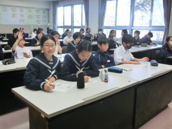 授業では先生に質問したり、学習書を解いたり、と~っても落ちついた授業の様子です