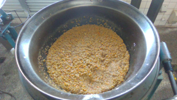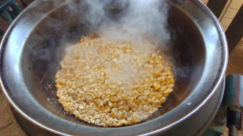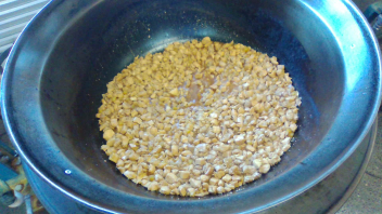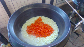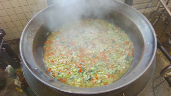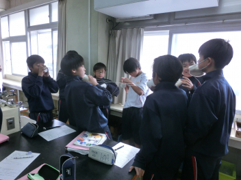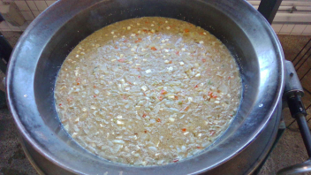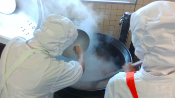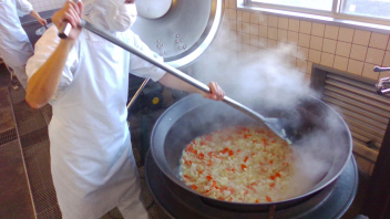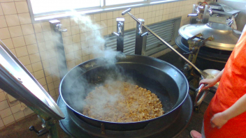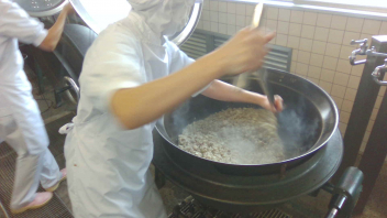 ごまみそ汁は、いつもの豚汁に、炒ったすりごまを入れて作りました。ごまのよい香りが広がります。