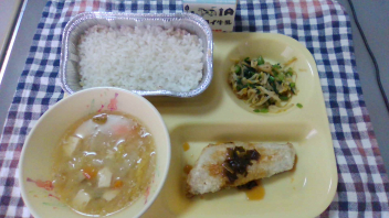 ・麦ご飯 ・牛乳 ・さわらのネギソースかけ ・小松菜ともやしのおひたし ・ごまみそ汁