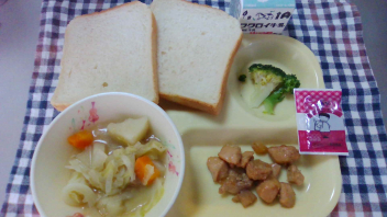今週の給食はいかがだったでしょうか?月曜日は「鶏肉の米粉揚げ・はなやさい・コーンクリームスープ」です。また来週、元気にお会いしましょう