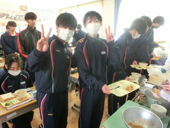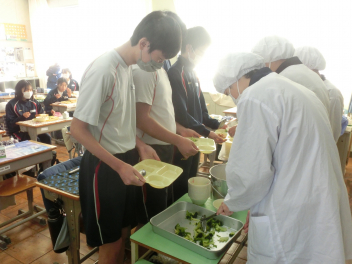浜松産の葉ねぎ・大根・小松菜・白菜・もやしが給食に使われました。