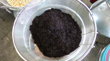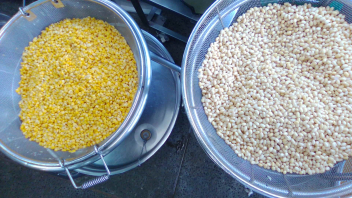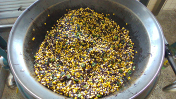 ひじきのサラダには、ひじきのほかに大豆・きゅうり・コーンが入りました。なかなか食事に取り入れにくいひじきも、サラダにすると食べやすくなります。