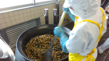 給食のカレーには、カレールウのほかにトマト・アップルソース・ウスターソース・数種類のスパイスを追加して作っています。「給食のカレーは大好きだから週に1回あっても嬉しいよ~」「もっといっぱい出してね」とよくリクエストを受けます。