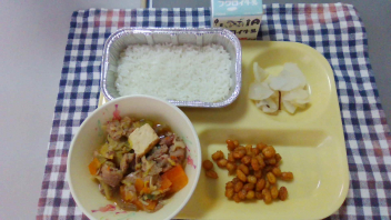・米飯 ・牛乳 ・豚すき焼き煮 ・親子豆 ・大根の浅漬け