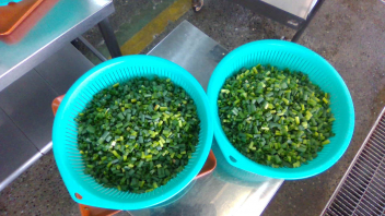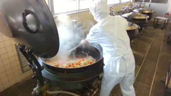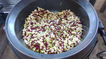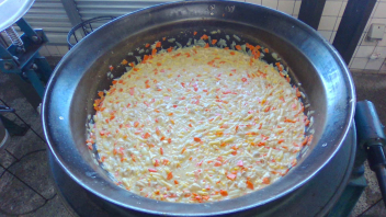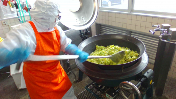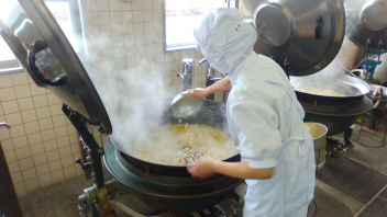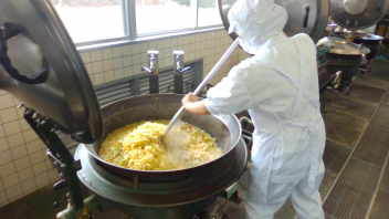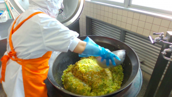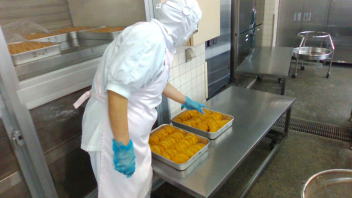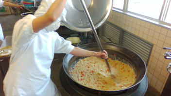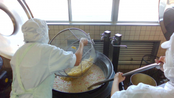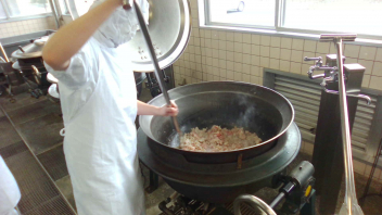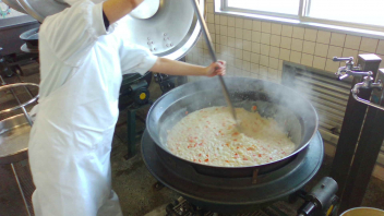 今日の給食は、一年に一度の「サーモンシチュー」です