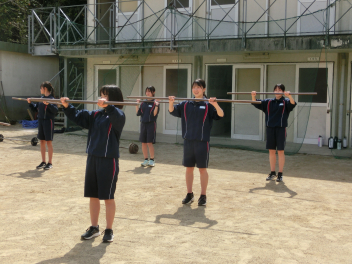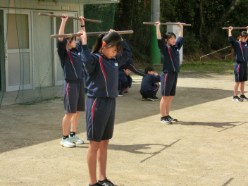 土日は開成中と合同練習ですが平日は湖東中で基礎練習